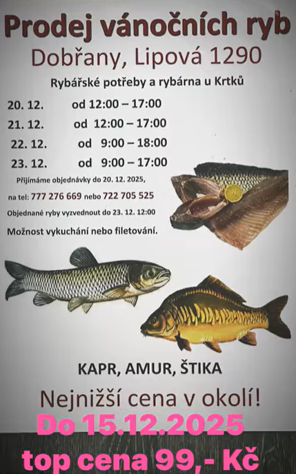 Navštivte také naši prodejnu rybářských potřeb a rybárnu v Dobřanech.