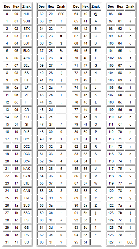 Tabulka ASCII